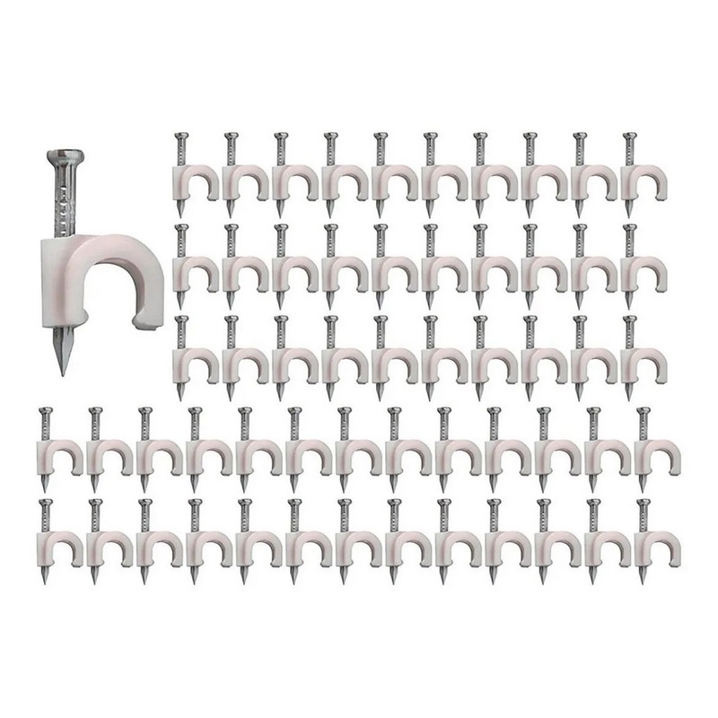 Kit 100 Grampo Miguelao Fixa Fio Cabo Coaxial Rg6 8mm Branco Prego De Aco