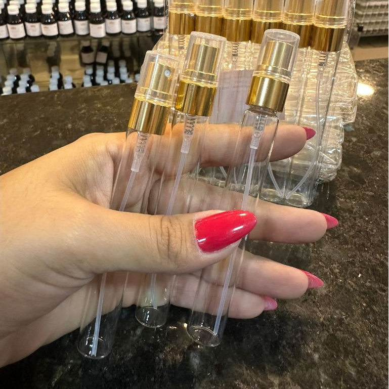 KIT COM 12 Flaconete de Vidro Válvula Spray Cromada Dourada Para Amostra De Perfumes - 10ml