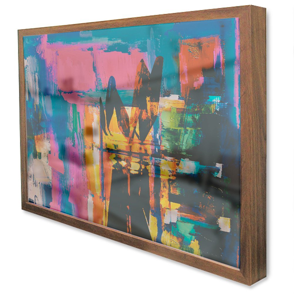 Quadro Decorativo Caixa Alta com Vidro Abstrato Intense TaColado Moldura Madeira 120 x 80cm