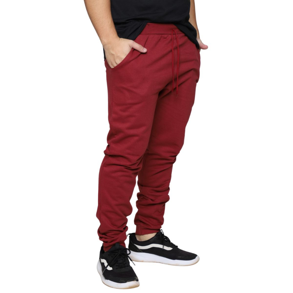 Calça Moletom Jogger Masculino Amarração Slim Flanelada Cós Elastico Bolso Lateral