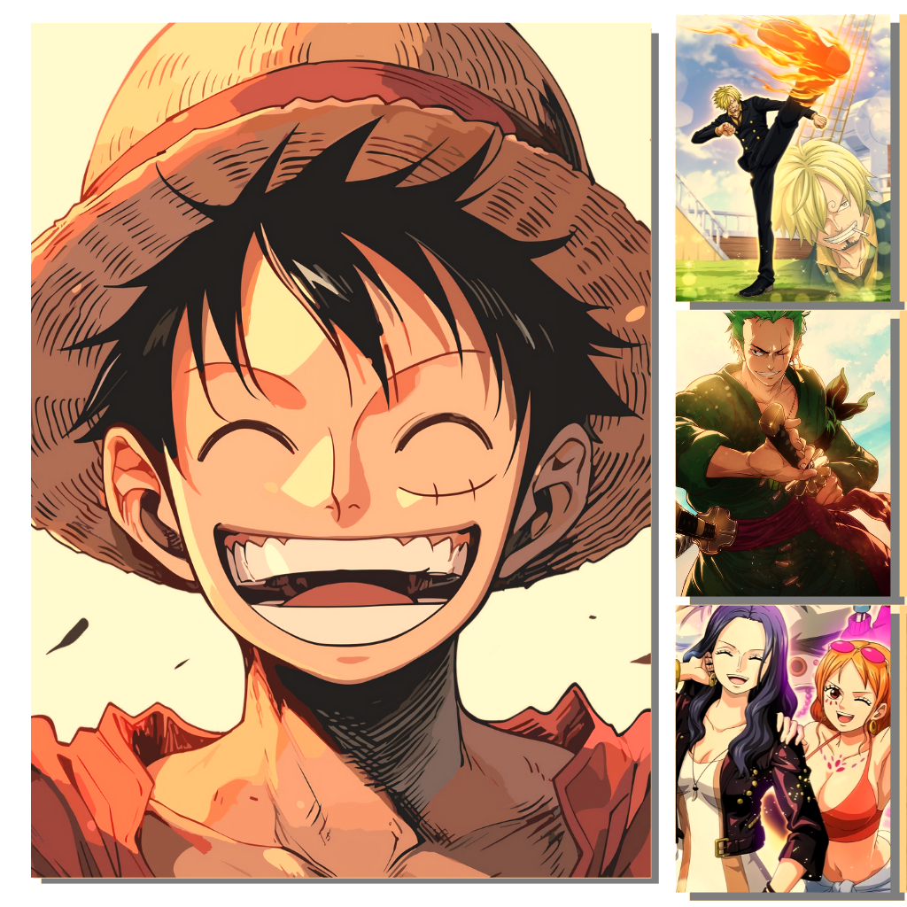 Kit 6 Poster One Piece - Pôster Cartaz Decoração Vintage Luffy Zoro Sanji Usopp Shanks Nami Chopper Robin Brook