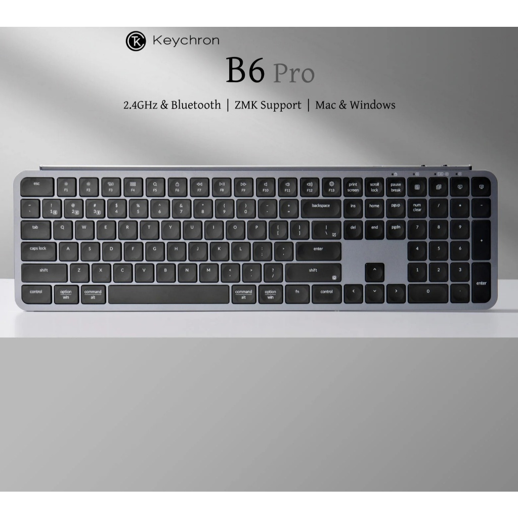 Keychron B6 Pro Teclado Sem Fio Ultra-Fino De Tamanho Normal 2.4GHz/Modos Bluetooth/, Programa ZMK