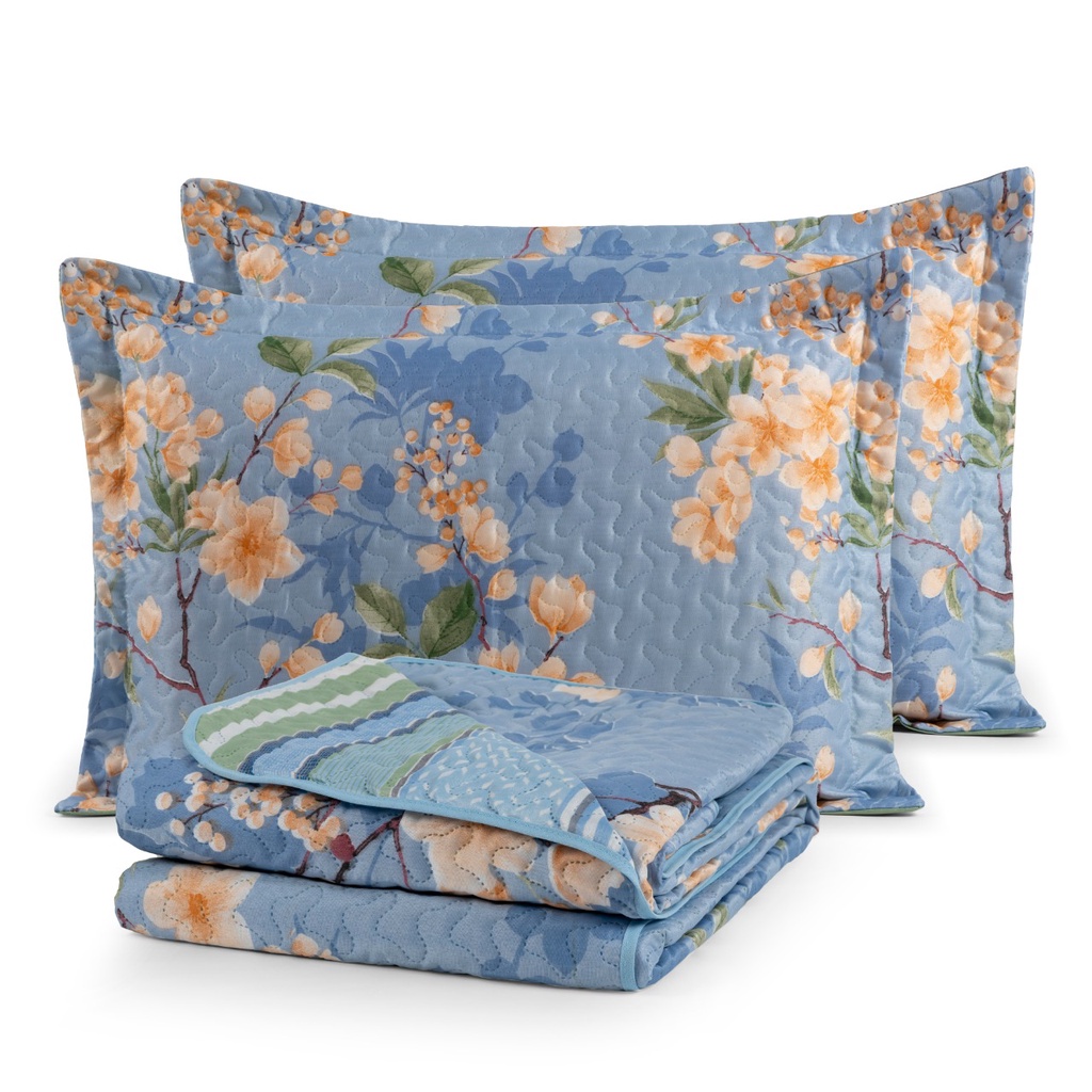 Kit Colcha Cobre leito Dupla Face Casal King Bouti Provence Bordado Ultrassonico 03 peças
