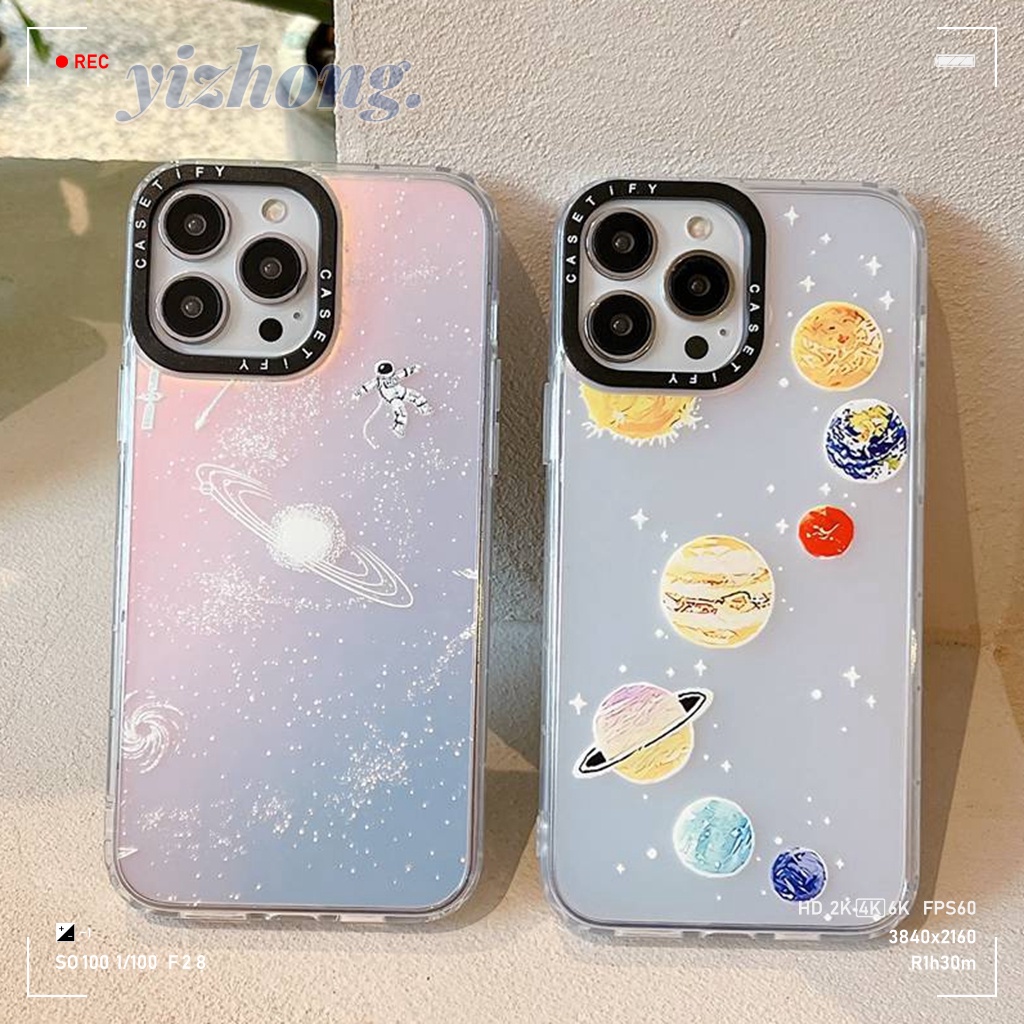 Caixa Protetora Para iPhone 11 14 Pro Max 13 XR Projeto A Laser Planeta Colorido Astronauta Impressão Capa Telefone Anti-Riscos Macia TPU À Prova De Queda 13Pro 12 X