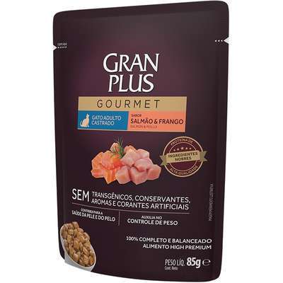 Ração Úmida GranPlus Gourmet Sachê Salmão & Frango para Gatos Castrados