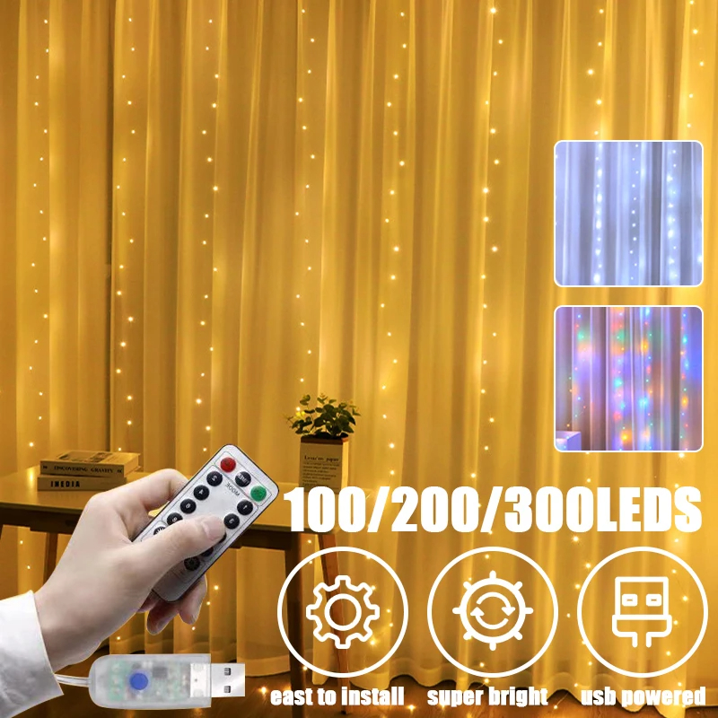8 Modos 100/200/300LED Luz USB Fada Cortina Cordão Luzes Nocturnas Decoração Do Quarto Para Raya De Natal Casamento