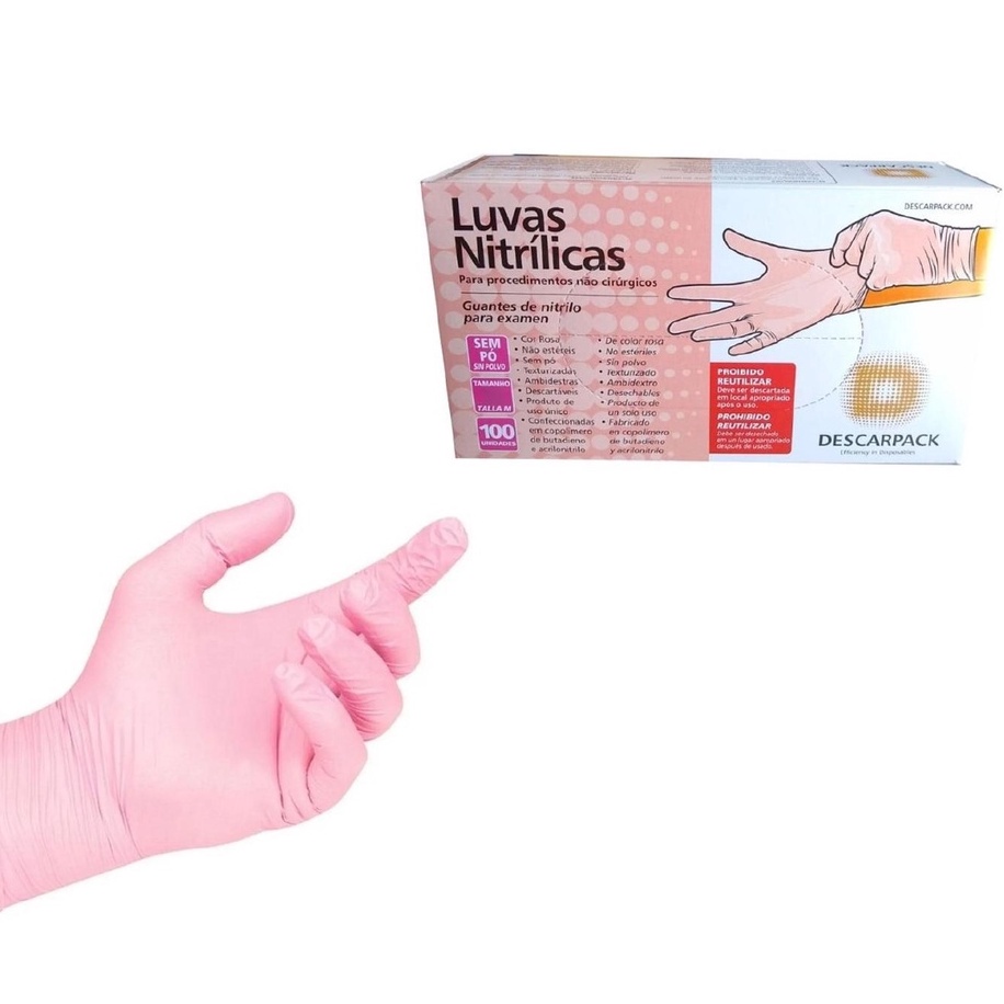 Luva Nitrilica Sem Pó Rosa - P/M/G - Caixa C/100 Und - Descarpack