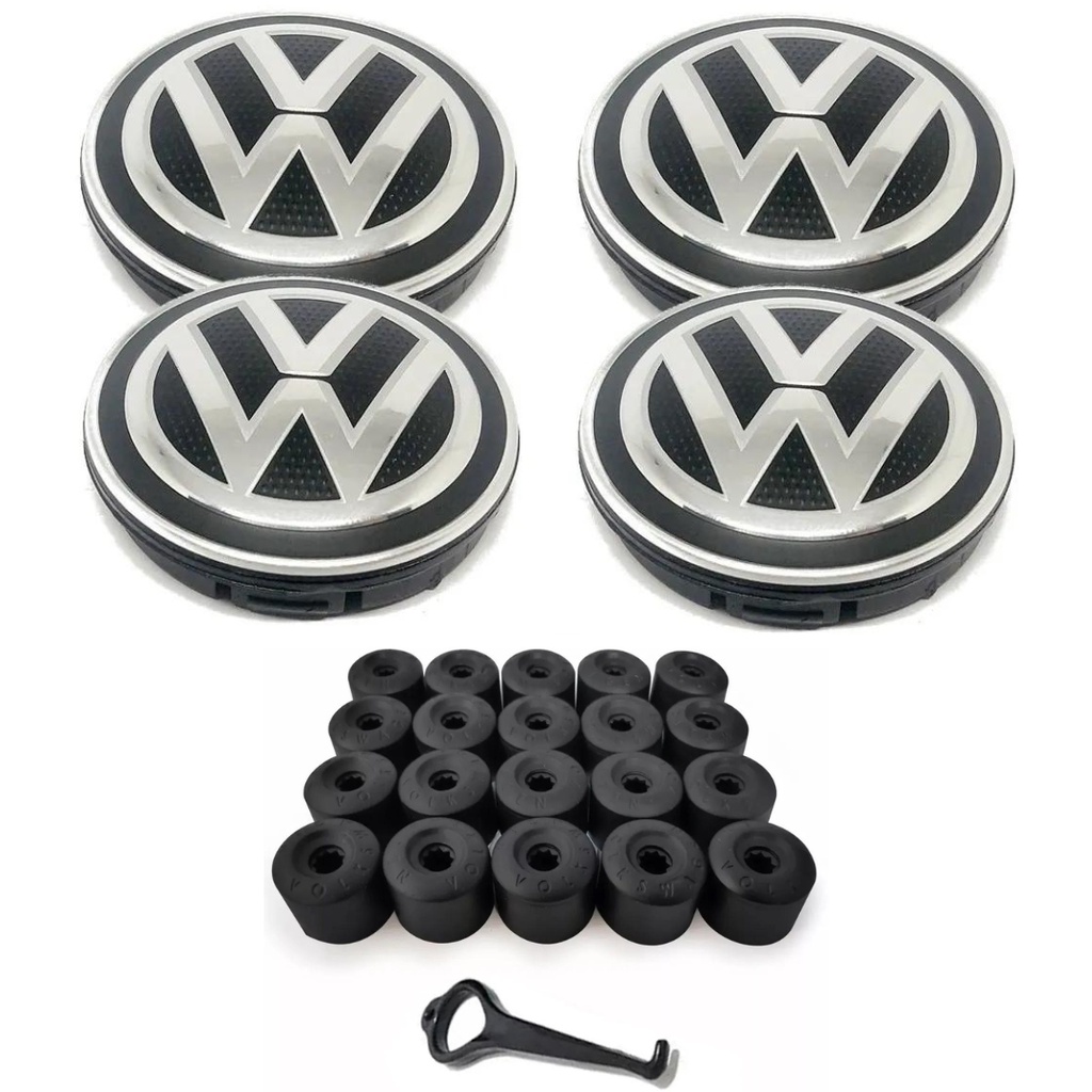 Kit 4 Calotinha Centro Roda Original Vw + Capa Parafuso Roda Kit C/20 Unidades VW Fox Polo Bora Golf