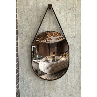 Espelho Decorativo Oval Banheiro com Alça Couro