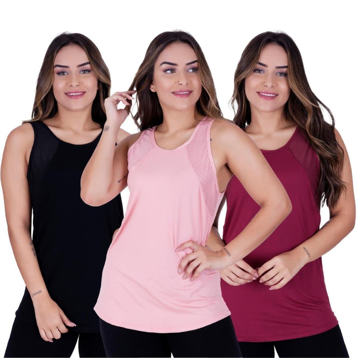 Kit c/3 Top Fitness Feminino Regata Para Camimhada Treino Academia