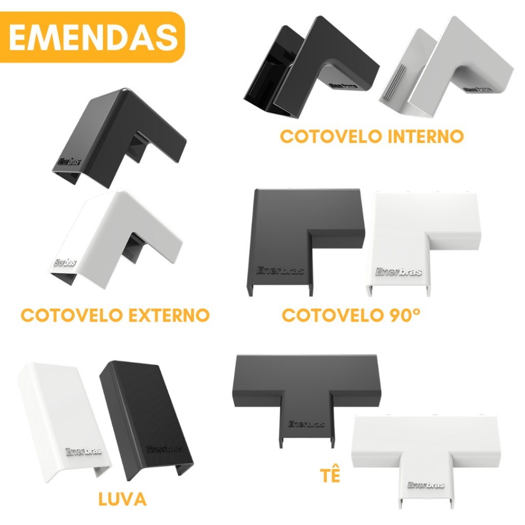 Kit Acabamento Canaleta 20x10mm Emenda Conectores PVC Luva Tê Cotovelo