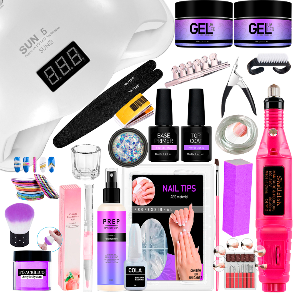 Kit Alongamento de Unha em Gel Completo Cabine Sun Lixadeira Elétrica Luminária - Envio Imediato