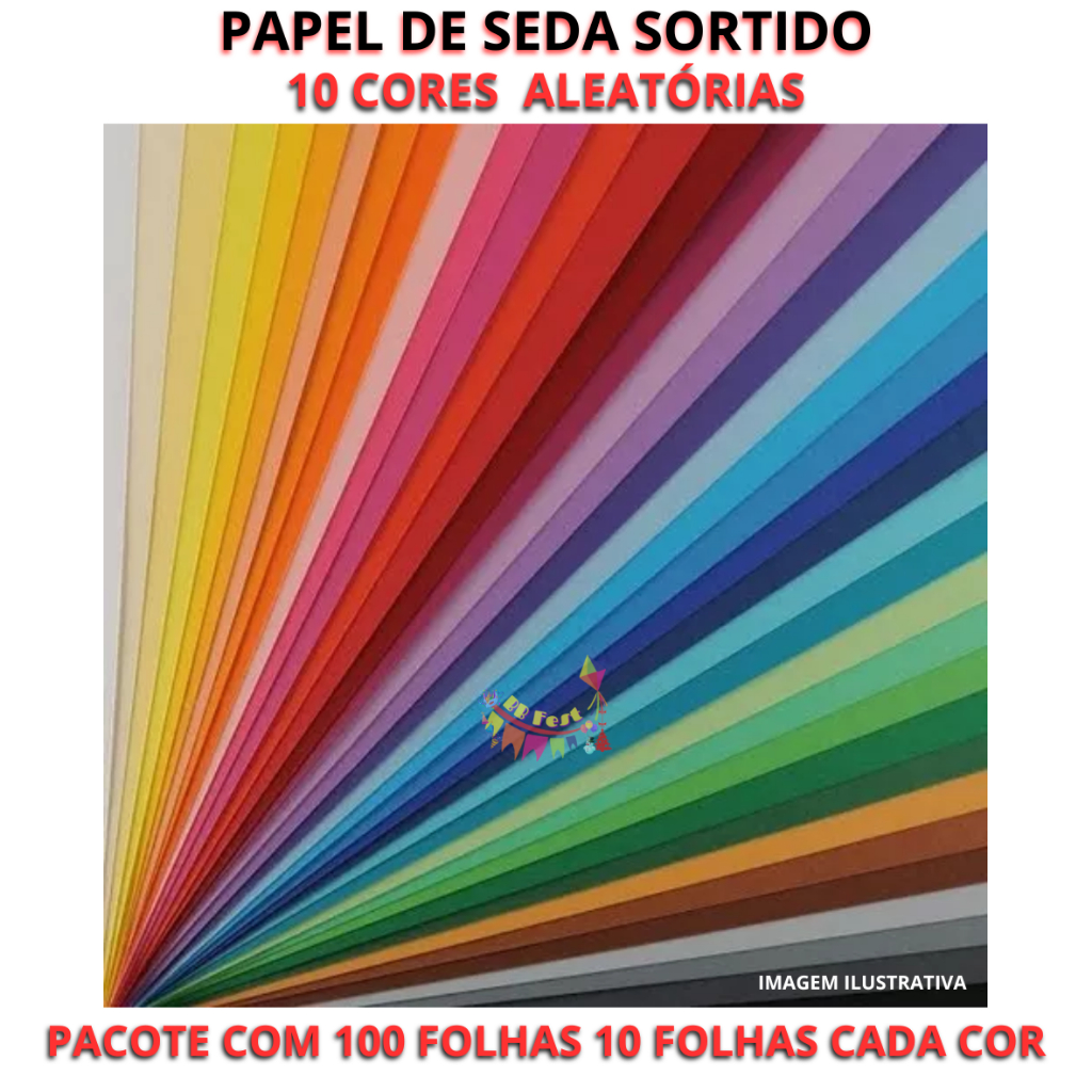 Papel de Seda 50x35 Pacote com 100 Folhas 10 cores sortidas