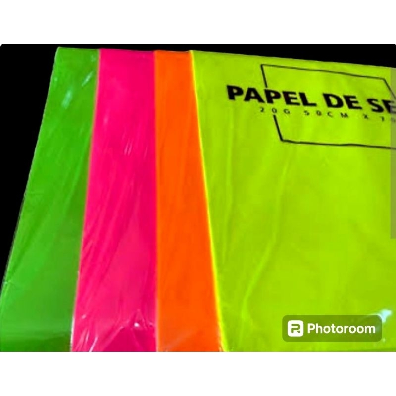 Papel de Seda Fluorescente 50x70cm Pacote C/ 100 Unidades - Cores Vivas 25 folhas de cada