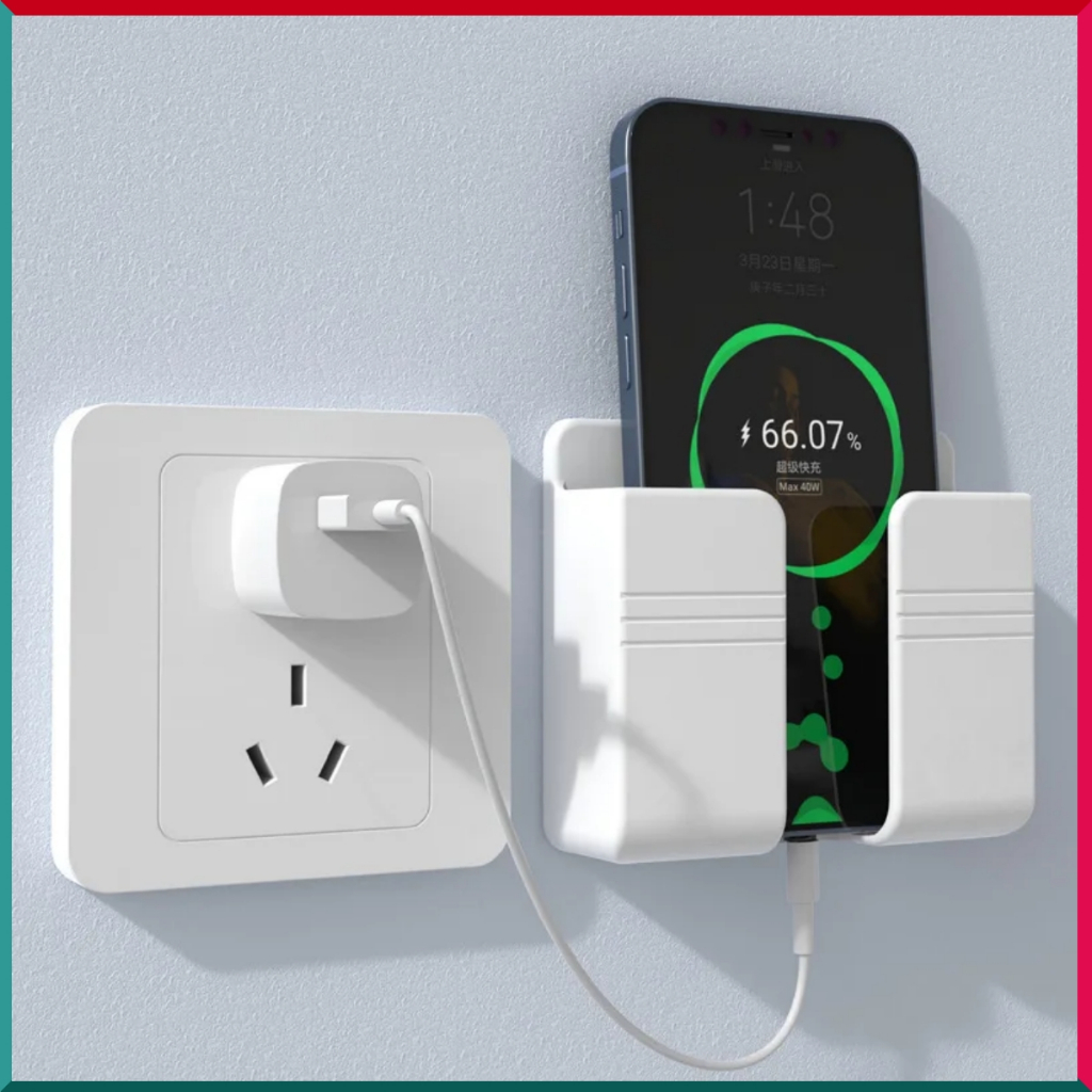 Suporte Fixo De Parede Para Celular Controle Remoto Organizador Multiuso Adesivo Ou Furos Com Abertura Para Cabo