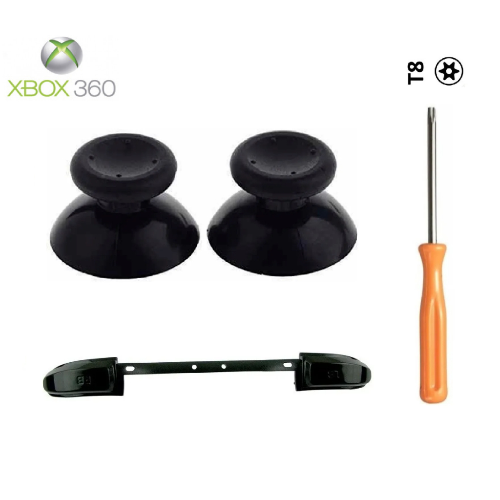 2x Botões Analogico Preto + 1x Botão Gatilho LB RB Preto + 1x Chave T8 Compativel Controle Xbox 360