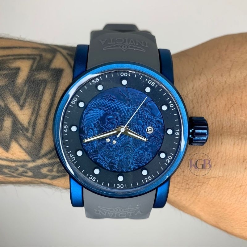 Relógio Masculino Invicta Yakuza Automático Cinza Azul A Prova D'água