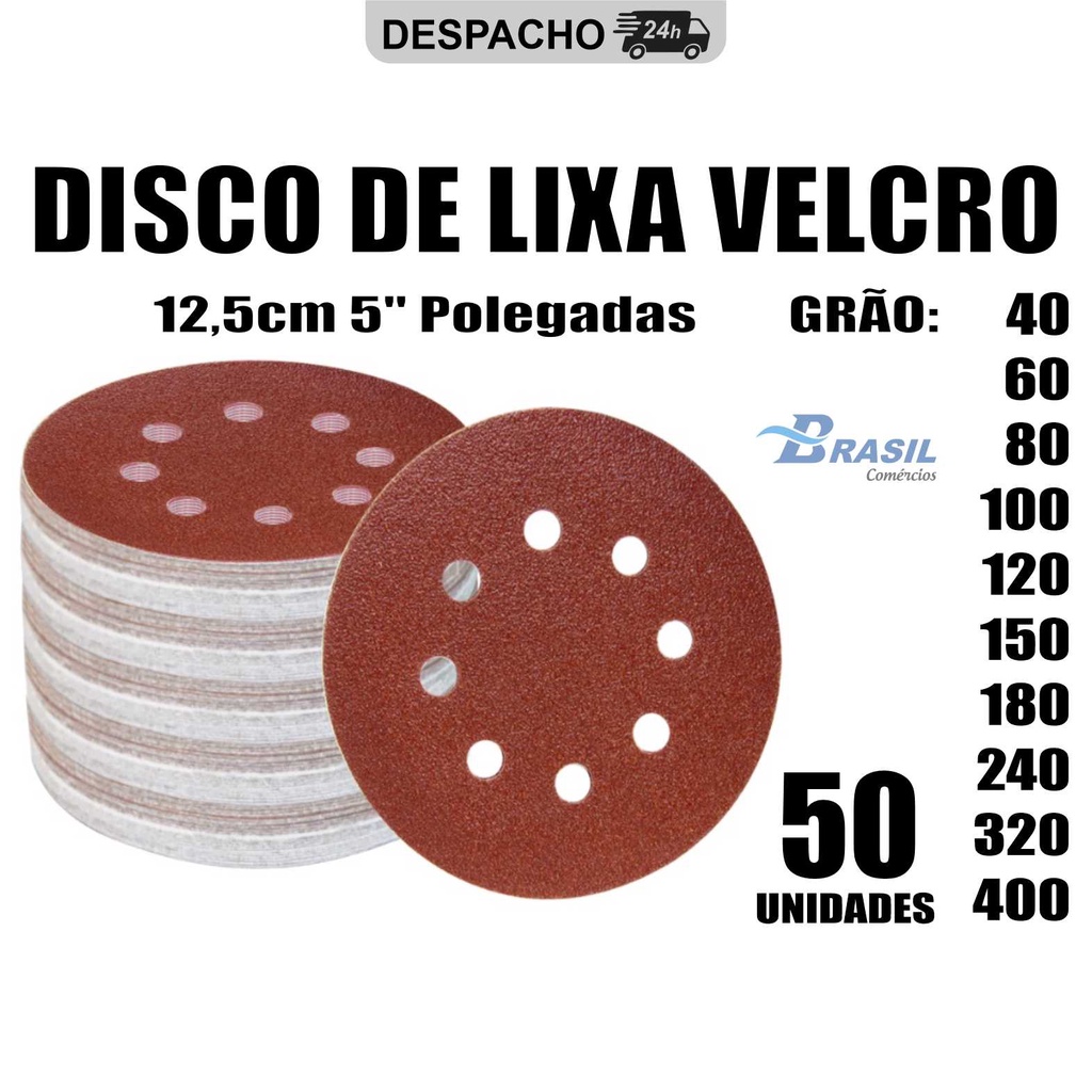 Kit 50 Disco Lixa Velcro 125mm 8 Furos Lixadeira Roto Orbital