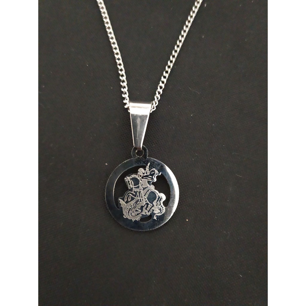 Corrente Colar Masculino Pingente Medalha de São Jorge da Capadócia Aço Inoxidável 316l Cirúrgico Amuleto da Sorte Proteção