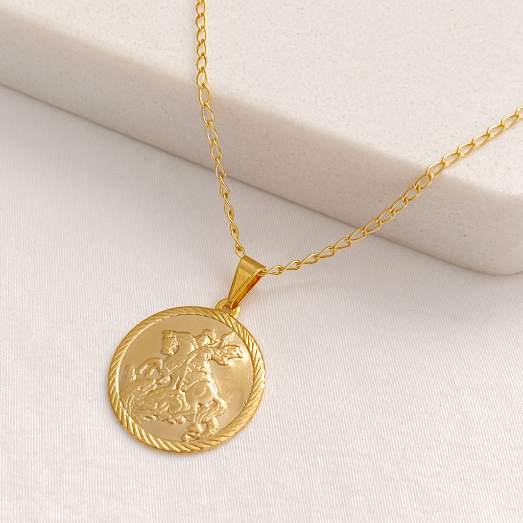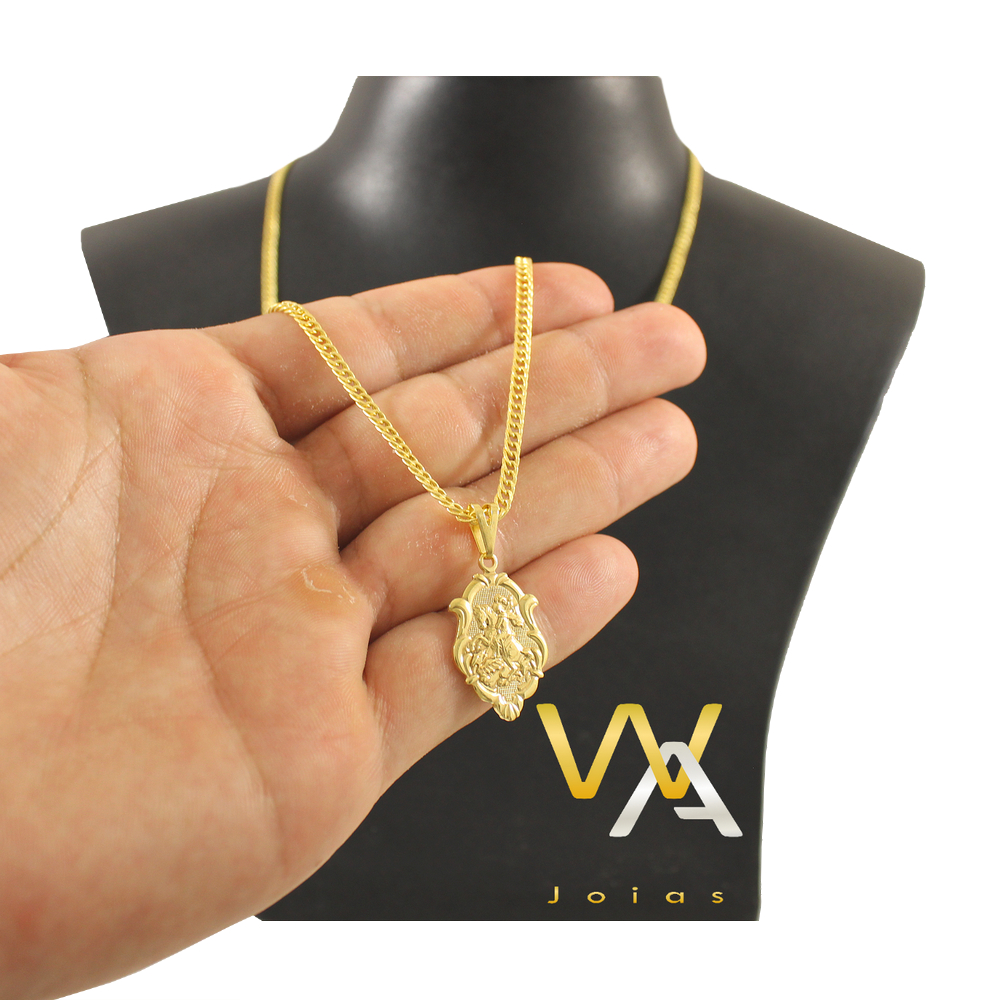 Colar corrente com pingente medalha de São Jorge folheado a ouro 18k