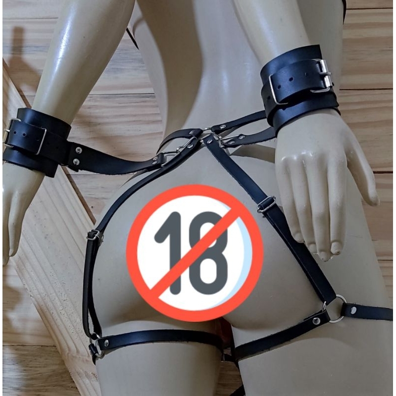 Harness PowerUp com Algemas, Extensor e Tornozeleira Arreio Arnês Cinto Perneira Cinta Liga BDSM