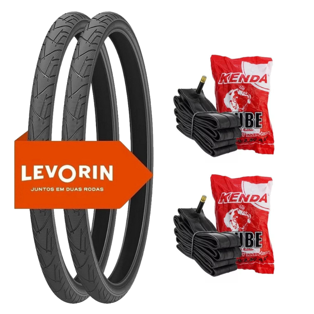 Par Pneus Bicicleta Levorin Praieiro Aro 26 X 1.95 Slick Balão Bike Mtb Urbano + 2 Camara De Ar Kenda Original