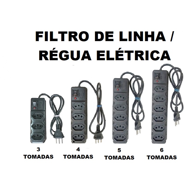 Filtro de Linha Régua de Tomadas Tripolar 6, 5, 4 e 3 e 10 Amperes Com Fusível