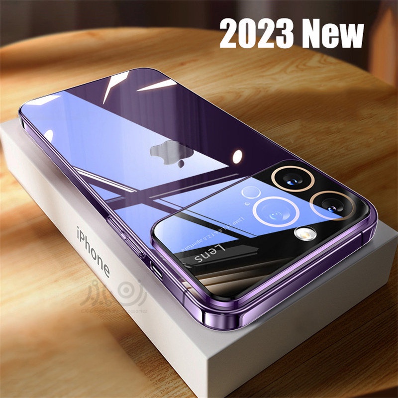 Capa Protetora De Vidro Temperado De Luxo Para iPhone 14 Pro Max 11 12 13 ProMax 14 Plus Traseira Rígida Acrílica Transparente