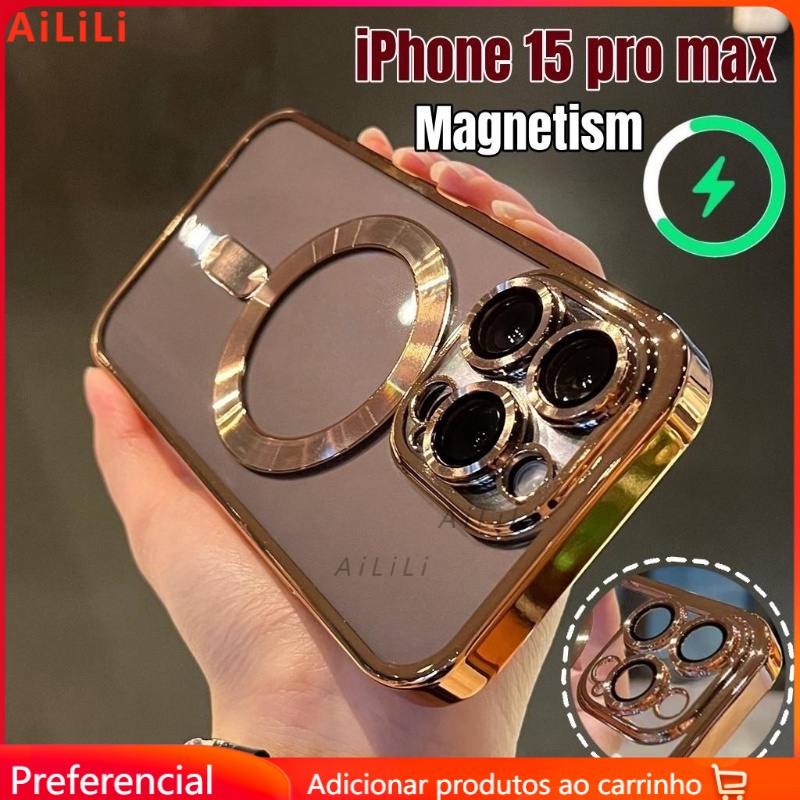 Luxo Transparente Para Capa Magnética Magsafe iPhone 15 14 13 12 11 Pro Max 14 15 Plus Protetora Acrílica Sem Fio Carregamento Da Lente De Vidro