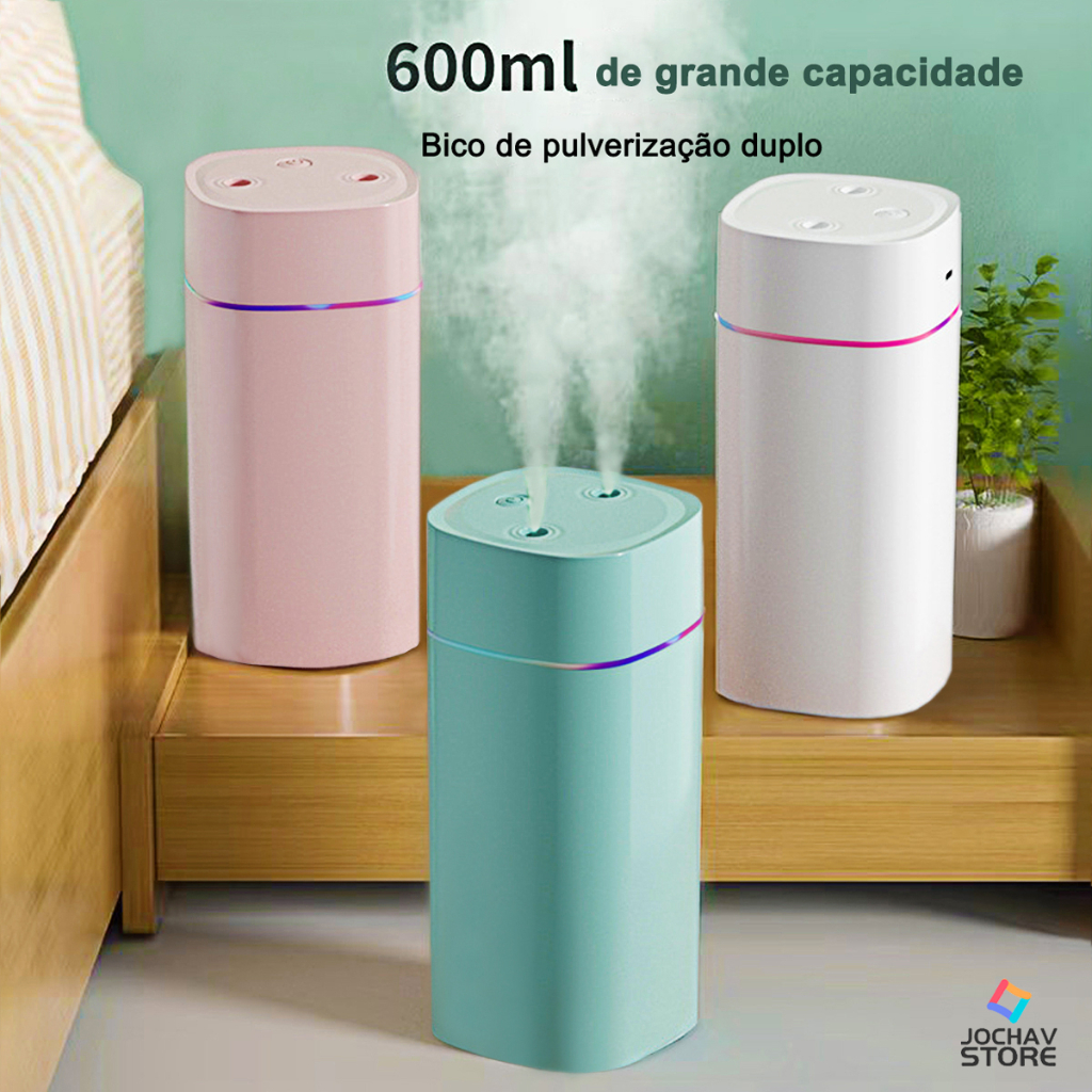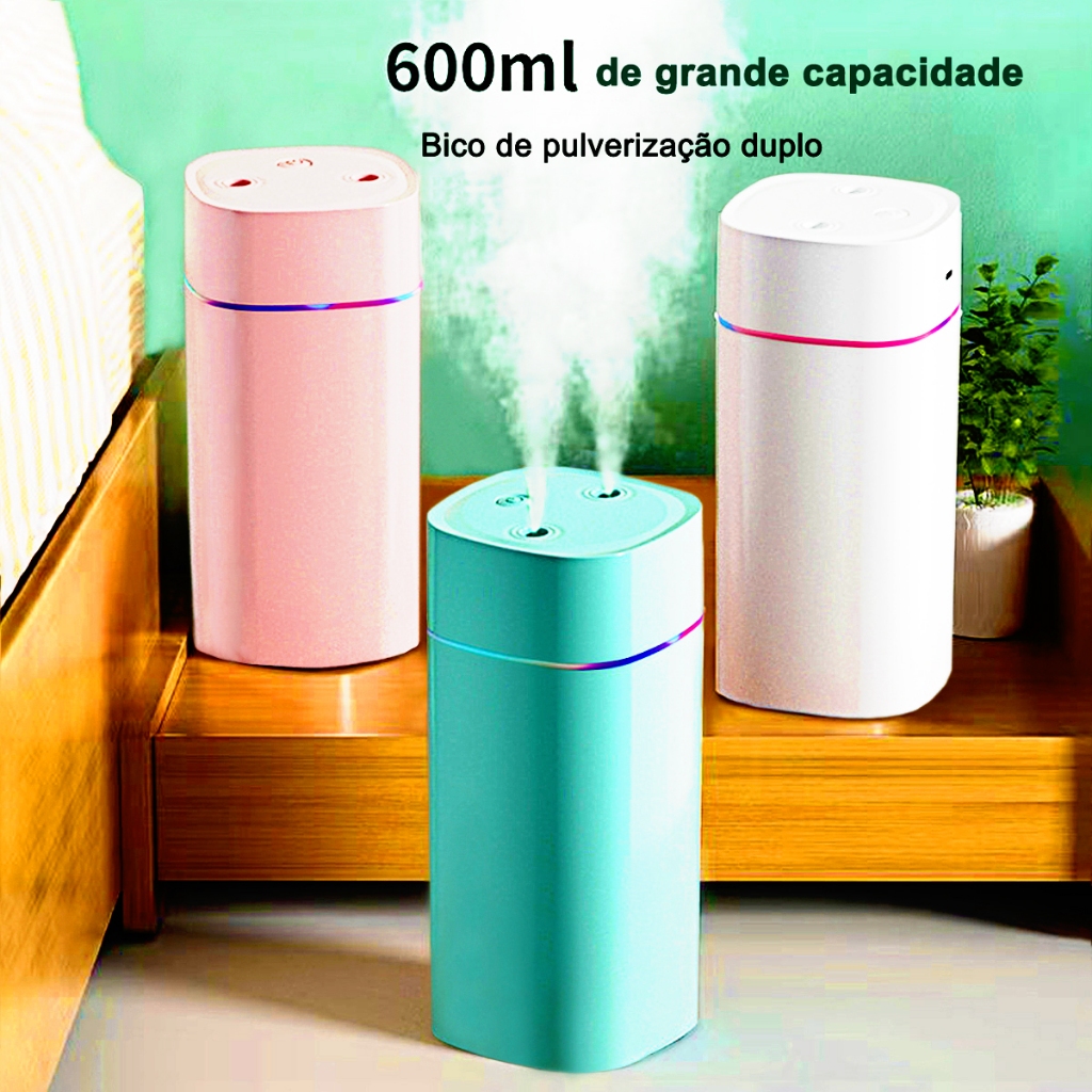 Umidificador De Ar Ultrassônico Grande Aromatizador Usb Com Bico Duplo Portátil Led De Ambiente