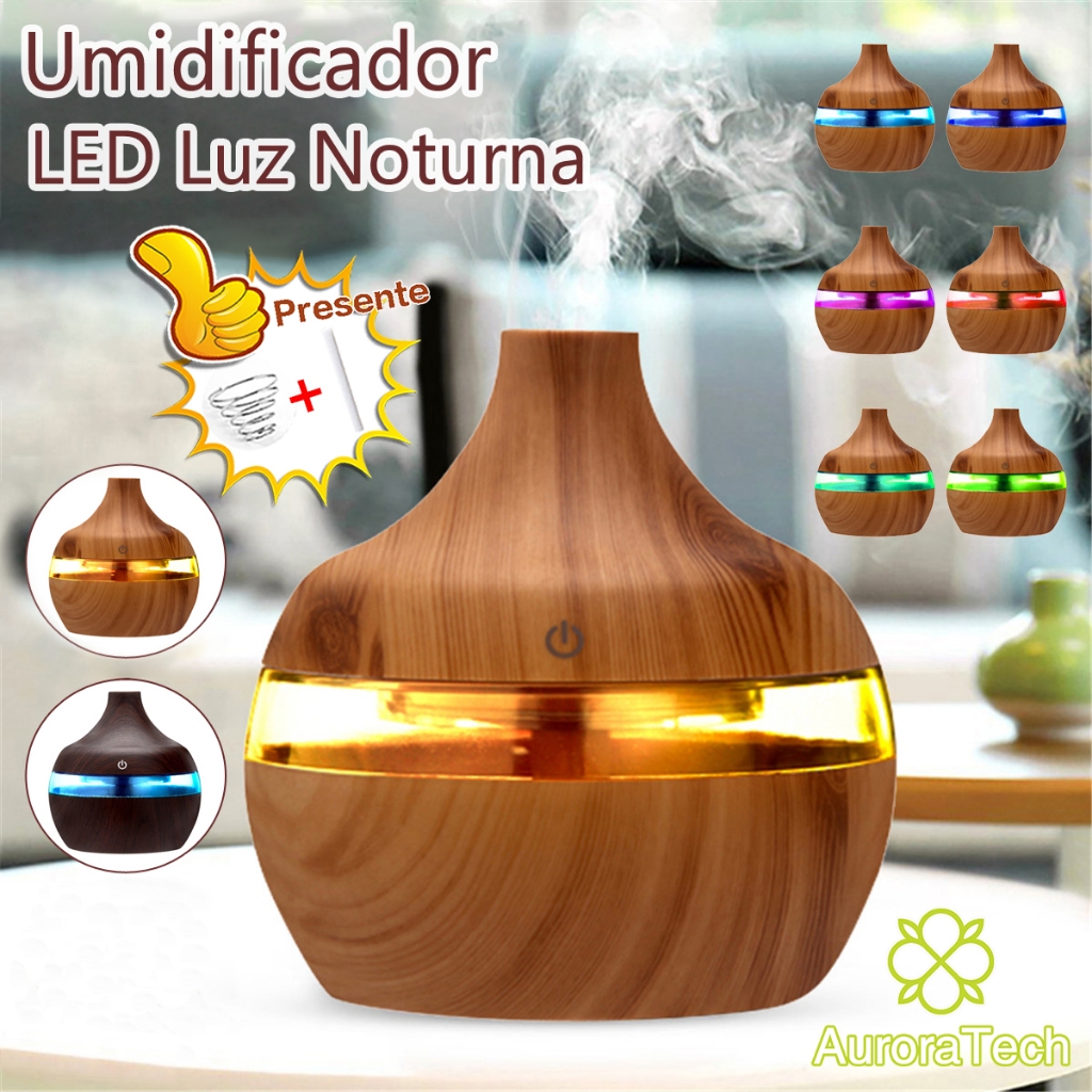 Umidificador De Ar Grande Ultrassônico Difusor De Aromatizador Usb Madeira Com Led Purificador De Ar