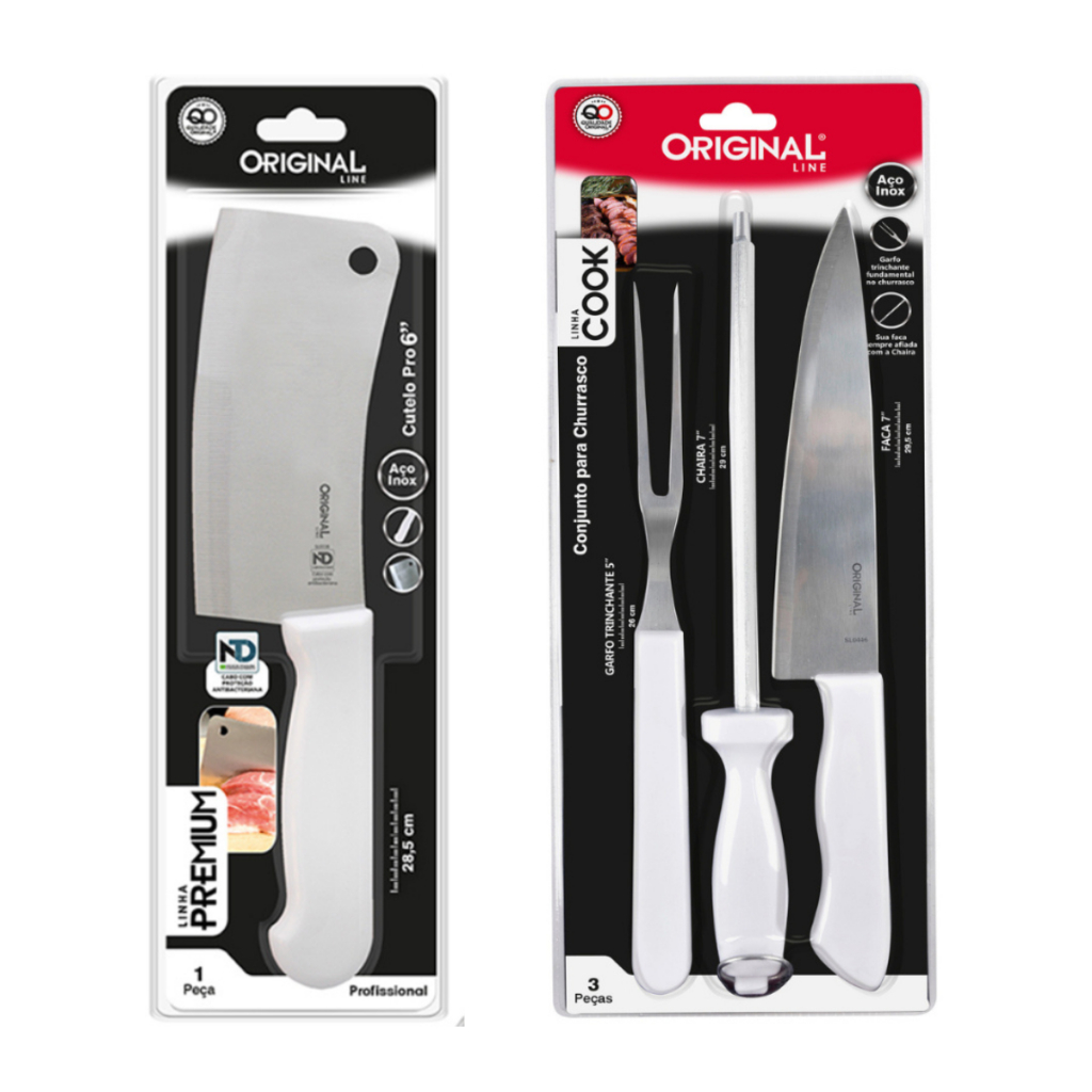 Kit Churrasco 1 Cutelo 6" profissional + 1 Conjunto 3 Peças Faca 7" Garfo 7" Chaira 5" ou 2 Peças Faca Garfo em Aço Inox ou Escolha sua Peça