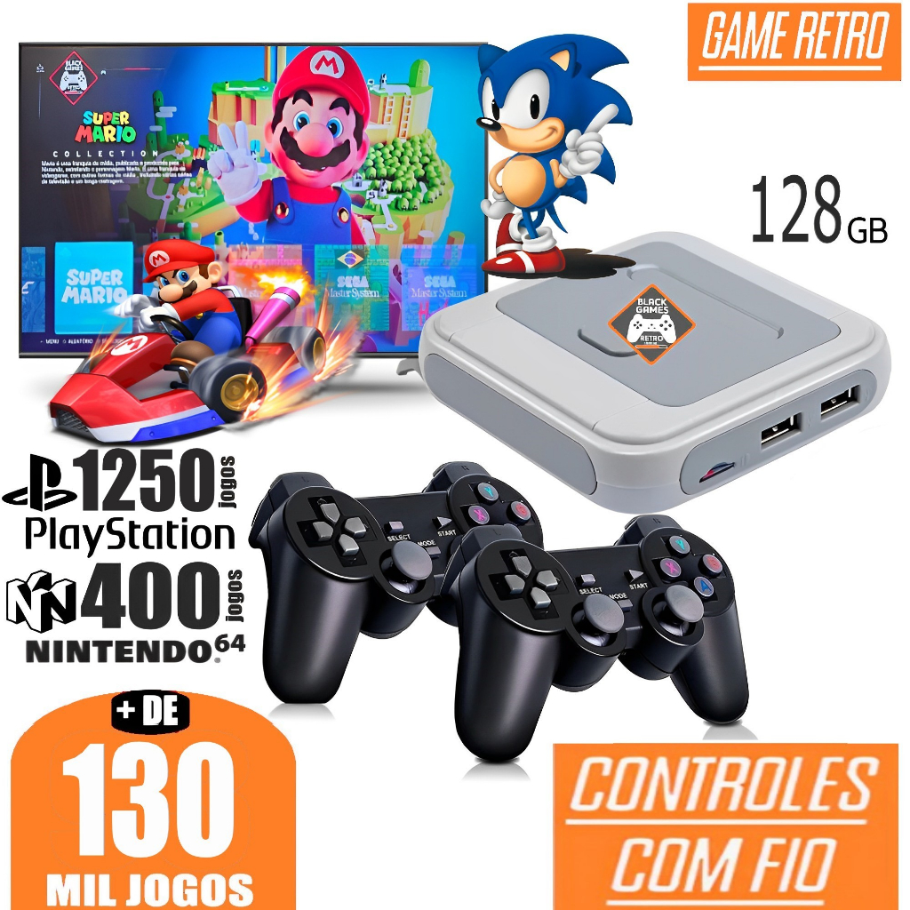 Vídeo Game Retro 93.000 Mil Jogos 64gb 2 Controles Com Fio Jogue Super Nintendo Megadrive Playstation 1 Arcade e vários outros Consoles Multijogos