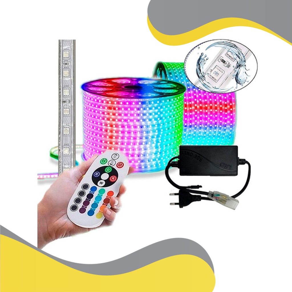 Fita Mangueira De Led Rgb 5050 IP67 Com Fonte e Controlador Para Decoração lojas fachada