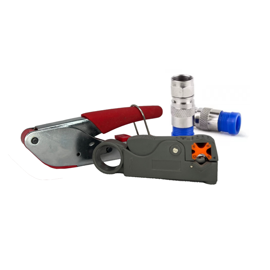 Kit Alicate Crimpador Descascador Cabos RG6 RG59 Antenista