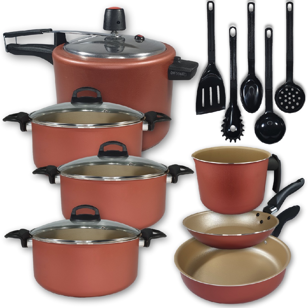 Kit Jogo de Panelas 13 Peças Completo Antiaderente Teflon Com Panela de Pressão 4,5L