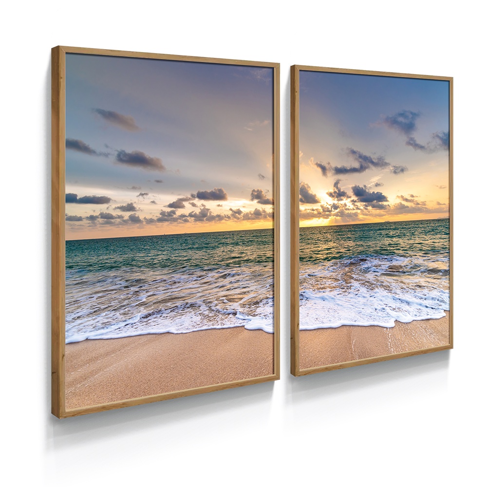 Quadros Decorativos com Moldura e Vidro Tamanho A3 Praia Mar Paisagem Entardecer Quarto