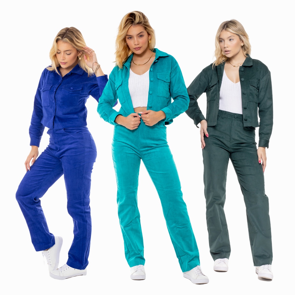 CONJUNTO JAQUETA Feminino COM BOTÃO E CALÇA DE (COTELE) .CON-017