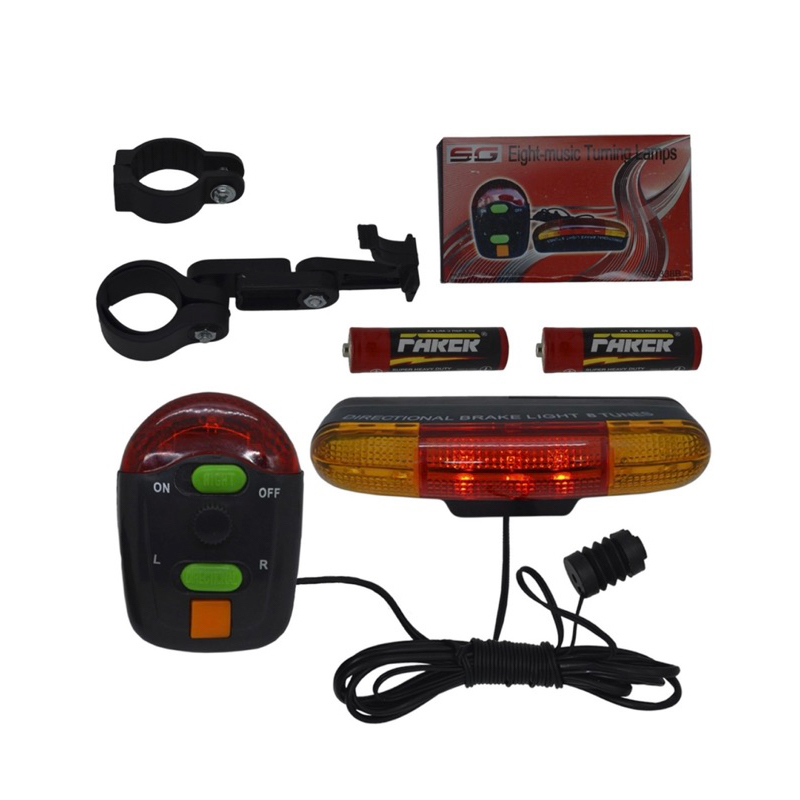 Kit Lanterna e Farol De Bike Com Buzina Seta Luz De Freio e PiscaO conjunto de iluminação Brake Light led tem 4 funções (seta, luz de freio e lanterna)