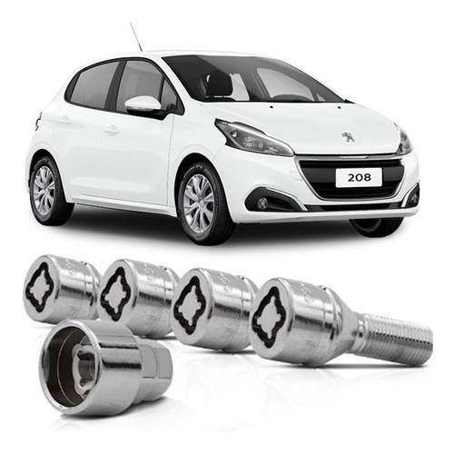 Kit Jogo Parafuso Antifurto Trava de Roda Peugeot 208 Todos Modelos