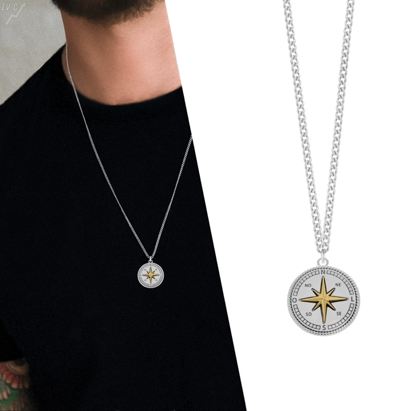 Colar Masculino Rosa dos Ventos Aço Inox Corrente Cordão Bussola Aço Cirúrgico Correntinha fina com pingente