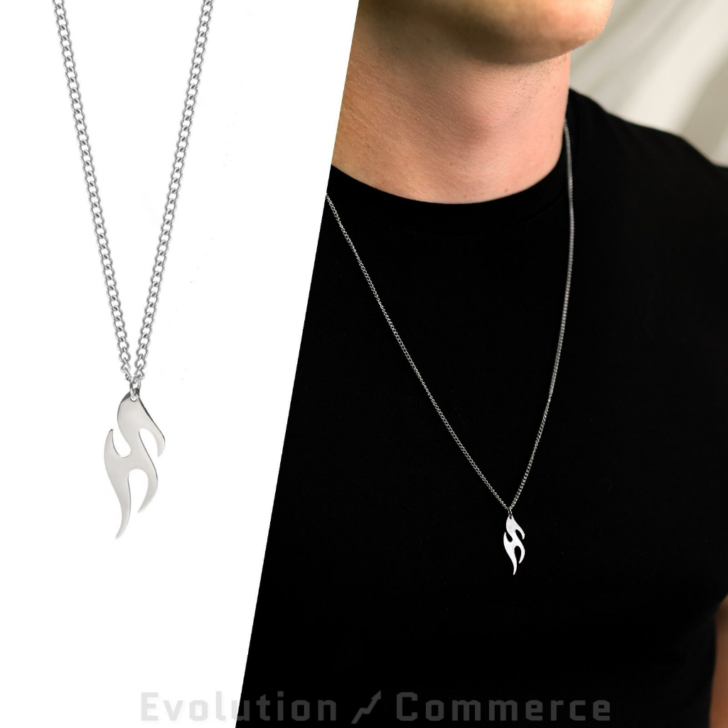 Colar Masculino Corrente Cordão Correntinha com Pingente Fogo Chama Aço Inoxidável Não enferruja Acessórios para Homem Qualidade