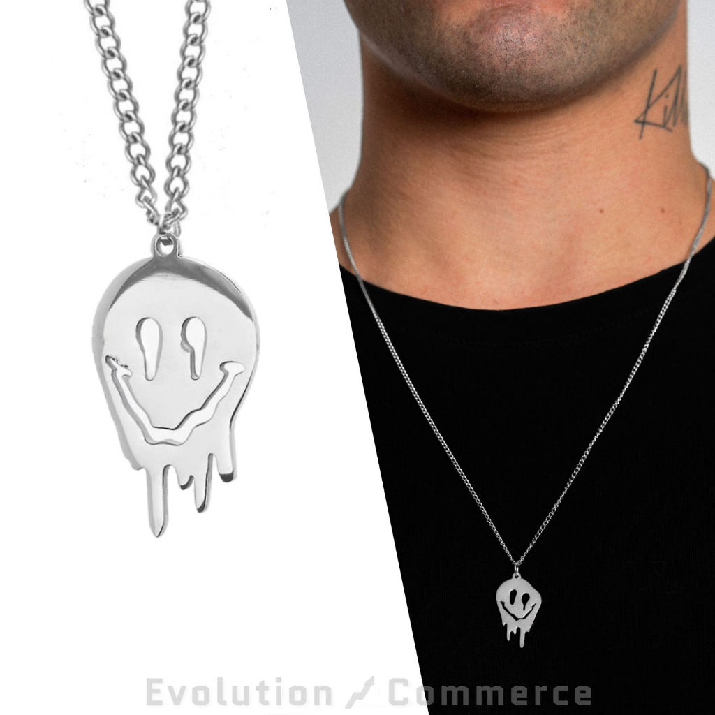 Colar Masculino Cordão Corrente com pingente Smile Carinha Sorriso Hype Aço Inoxidável Não fica Preto Antialérgico cor Prata Pode Molhar Correntinha Qualidade