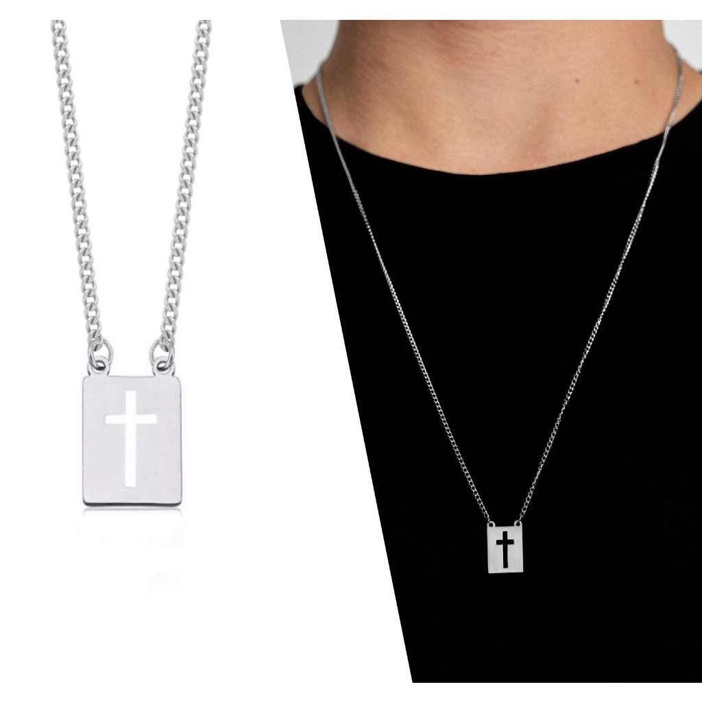 Colar Masculino Corrente com Pingente Cordão Correntinha tipo Escapulário Aço Inoxidável 316L Antialérgico Cruz Não fica Preto Qualidade Pronta Entrega