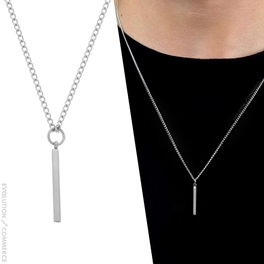 Colar Correntinha Masculino Pendulo com Pingente Aço Inox Não escurece cor Prata Antialérgico Corrente Cordão Homem