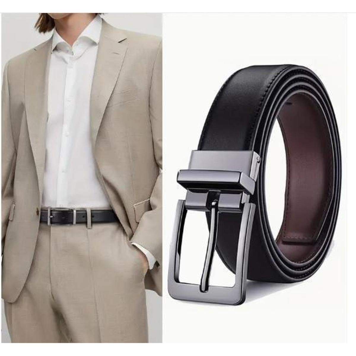 Cinto Masculino Couro Dupla Face com Fivela Giratória Cores Preto e Marrom