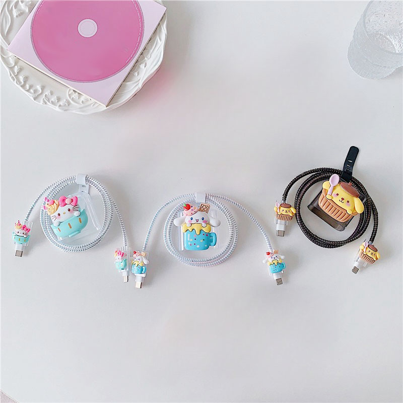 Protetor de cabo para carregador com design bonito de desenho animado, protetor de cabo de carregamento macio Kawaii protetor de cabo de dados para mulheres meninas compatível com carregador Ipad 18W/20W