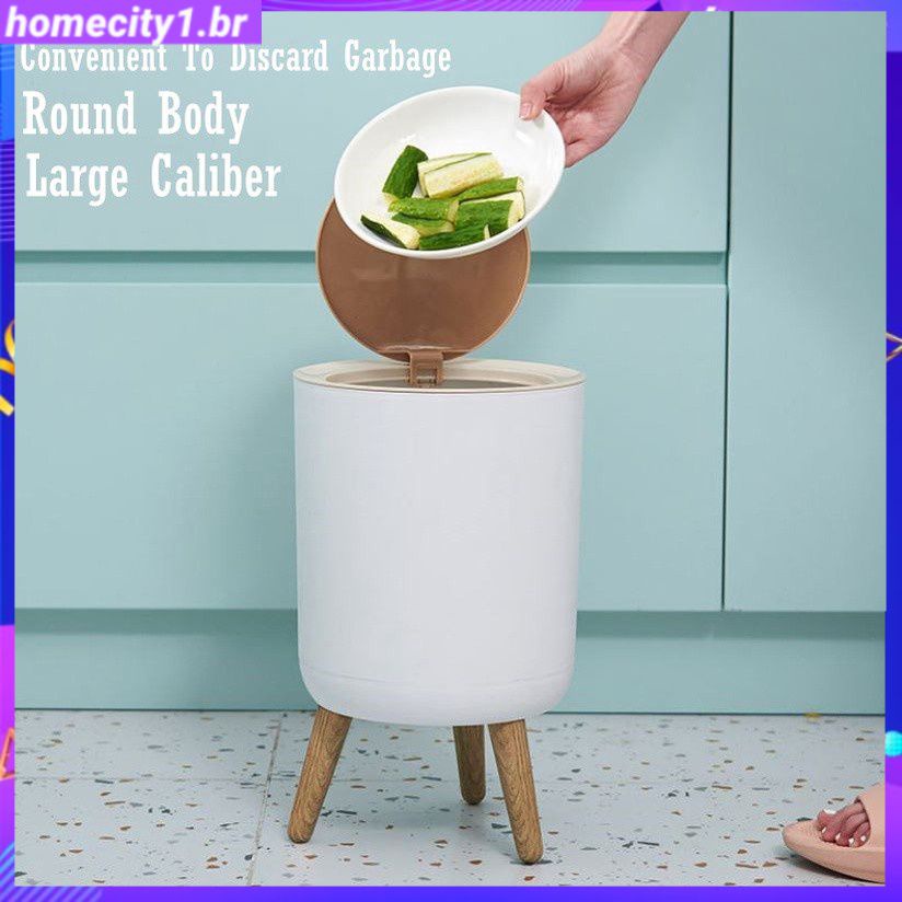 7l Lata De Lixo De Imitação De Pés Altos Madeira Mesa Plástica Com Tampa De Pressão Dustbin Living Room Balde De Cozinha