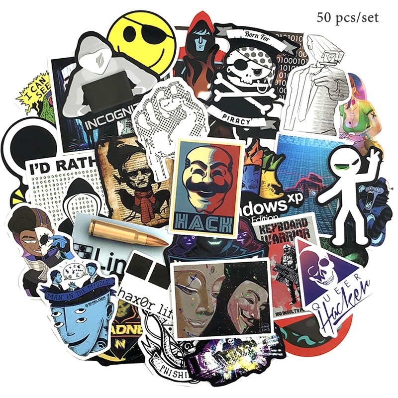 Y&P| Conjunto de adesivos à prova d'água de Hacker, 50 pçs/conjunto