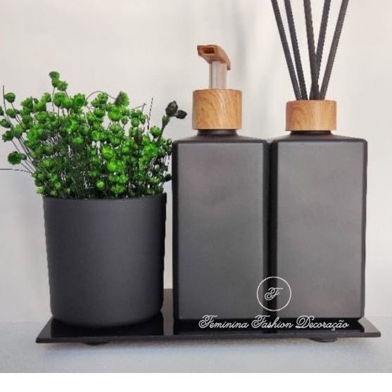 Kit Lavabo Diamante Preto Fosco 250ml / Frasco De Para Difusor De Ambiente e Sabonete Líquido